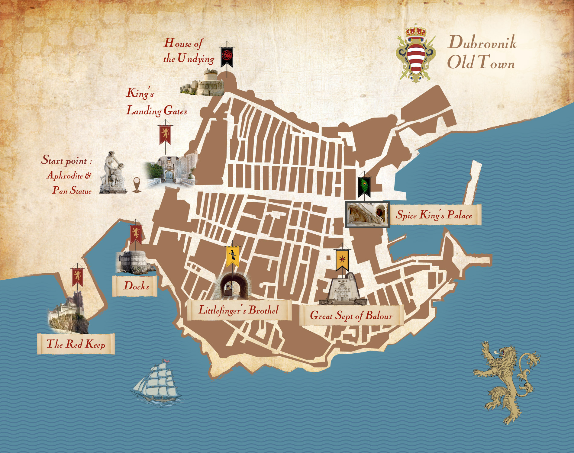 From the cathedral scene in kings landing to arya in braavos, with self guided tour.