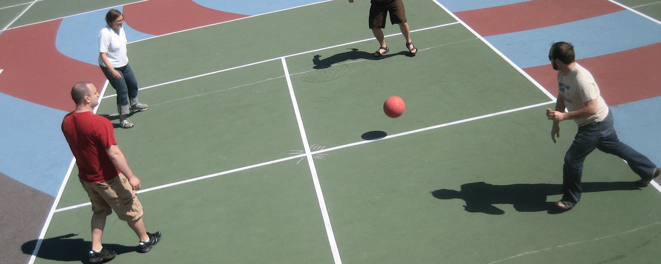 Anytime a player moves out of the game into the waiting line, a square is left open. Four square is a ball game played among four players on a square court divided into quadrants. Each player stands in one of the four squares. The server must drop the ball and serve after the bounce. There's nothing quite like a game to bring people together.