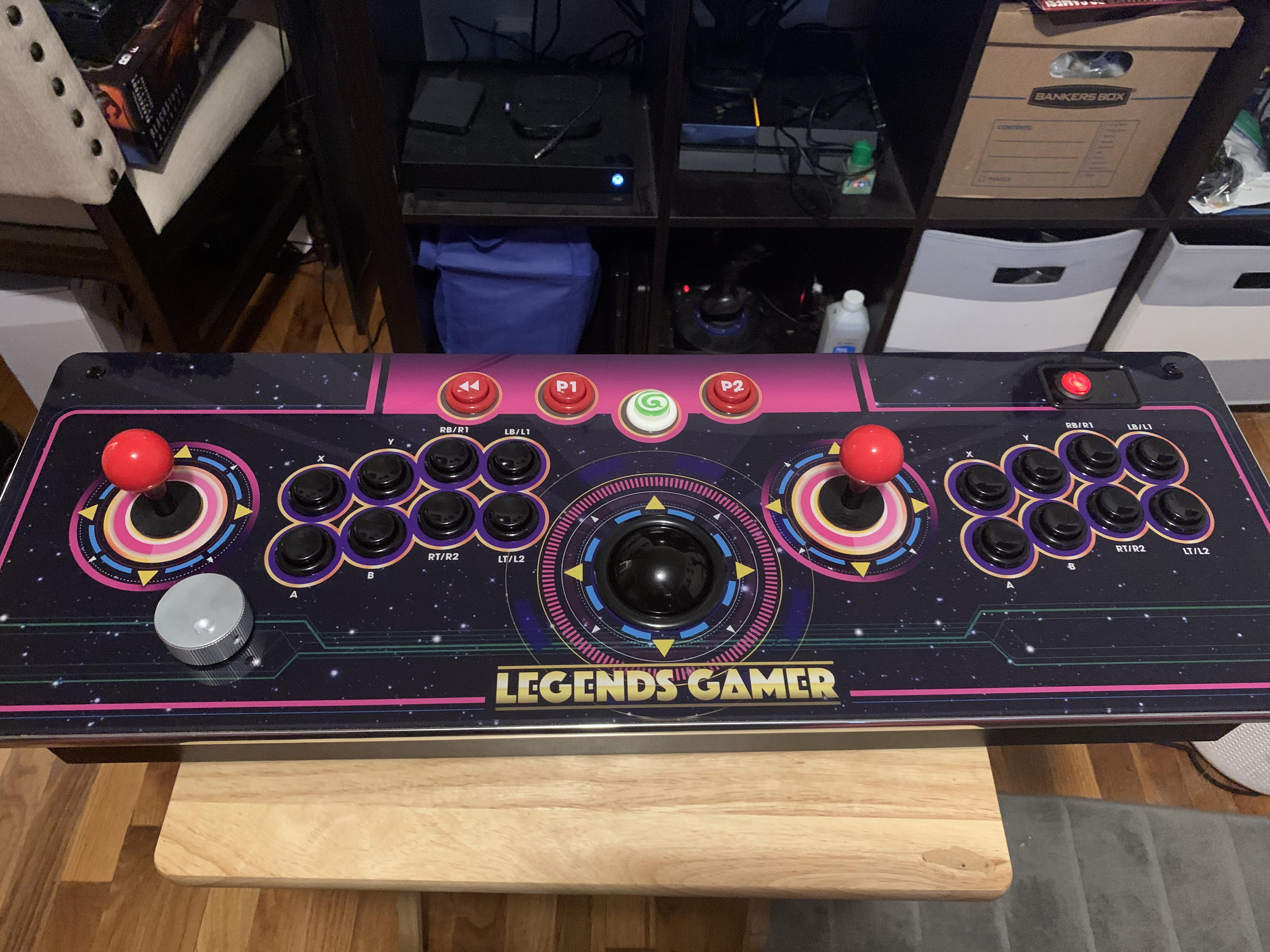The legends gamer control top is a wireless arcade controller that works with the included streaming arcade console and a variety of other devices.