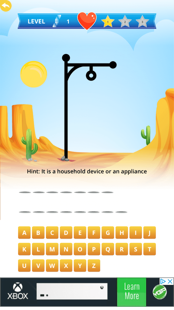 • hangman with hints is an excellent way to test your vocabulary, • awesome color graphics and easy to download!