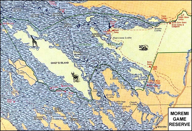 Download scientific diagram | map of the okavango delta, showing safari camps and moremi game reserve.